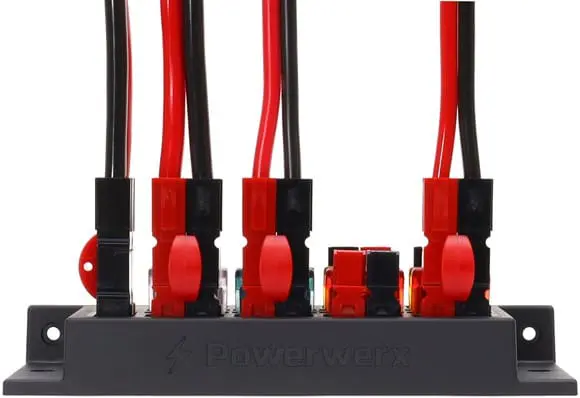 Distributieblok voor 15/30/45 Powerpole connectoren. 9 posities. Alle uitgangen zijn gezekerd.
