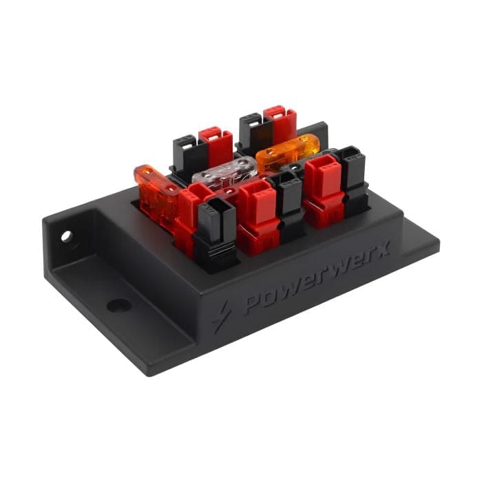 Distributieblok voor 15/30/45 Powerpole connectoren. 5 posities. Alle uitgangen zijn gezekerd.